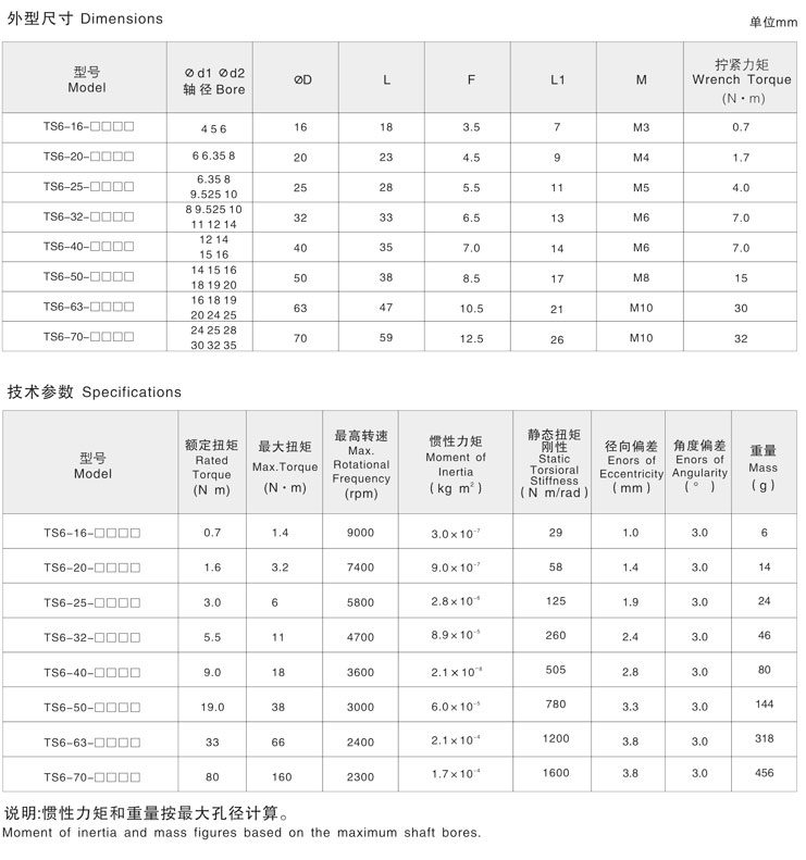 5. 剛性聯軸器兩端不同孔徑大小的產品型號也備有庫存